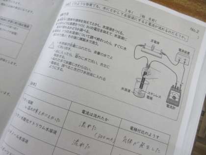 「どのような物質でも溶かして水溶液にすると電流が流れるのか」という課題に取り組んでいます。