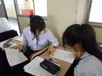 中間テストに向けて復習の問題に取り組んでいます。