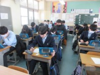 3限目、体育大会に向けて初めての学年練習が運動場で行われました。“よさこいソーラン”の全体の動きを確認しました。