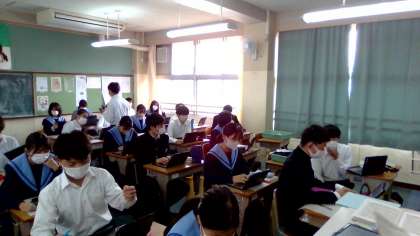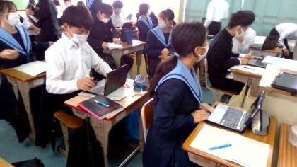 人工知能について書かれた2つの文章を読み,自分の考えを書く場面です。