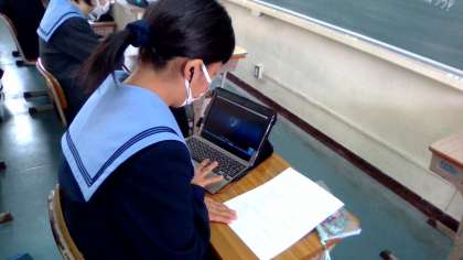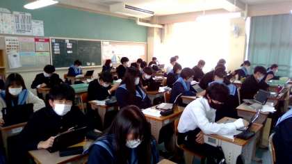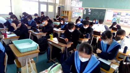 リスニング教材を使って,音を聞き取り,PCで書き取りをしています。