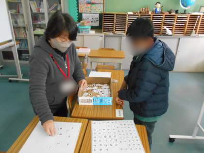 ひらがなを使って,クロスワード風に学習しています。