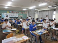 校長先生から、一人ひとりがルールを守って行動してください、とのお話がありました。その後、学代が今回の宿泊学習のスローガン(全力、協力、思考力、大自然で三原力を出し尽くせ!)を伝えました!