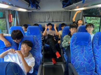 3組、バスに乗り出発待ちです。