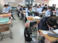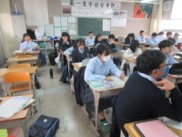 1組は習熟度別の英語の授業です。現在形の英文を過去形に変えています。