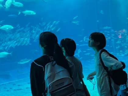 美ら海水族館。綺麗な魚がたくさん。ちゅらうみサイダーがとても人気でした♪