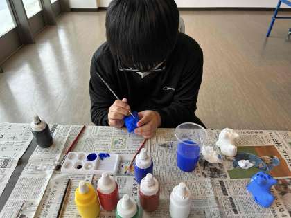 クラフト体験では、ゼリーキャンドルとシーサーの絵付けをしました。