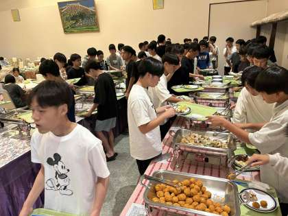 男子もお皿いっぱいにとります。