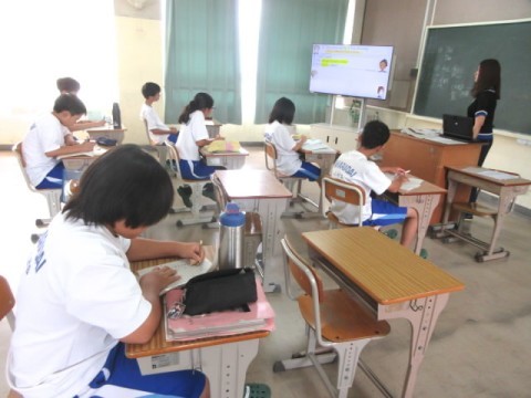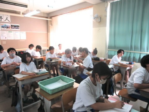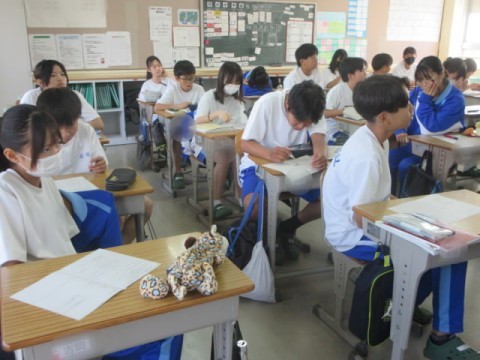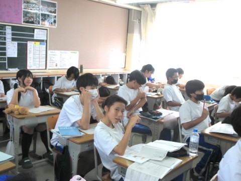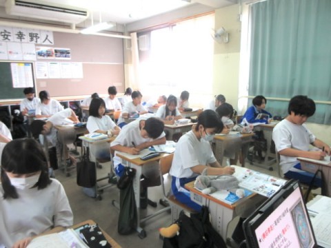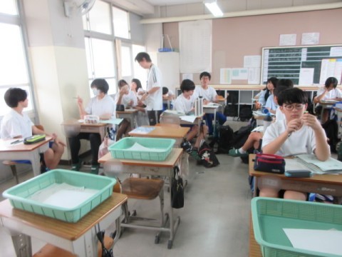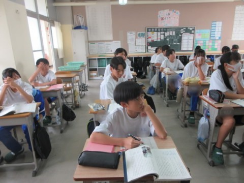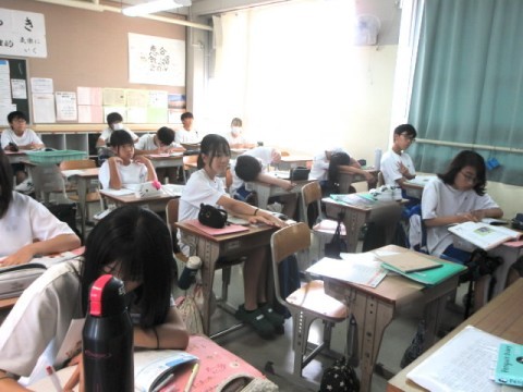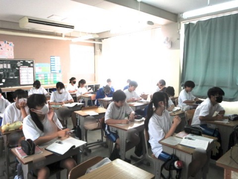 中間テストに向けて、各々が教えあいをしたり一人で課題に取り組んだりしています。