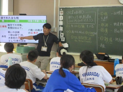 授業の目標は「律令による税制度はどのようなものだっただろう」です。