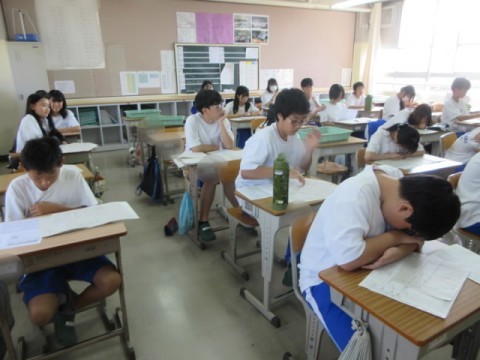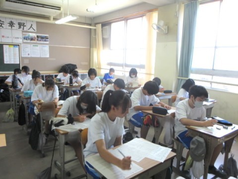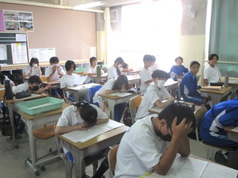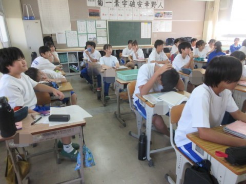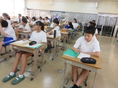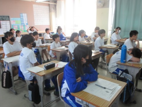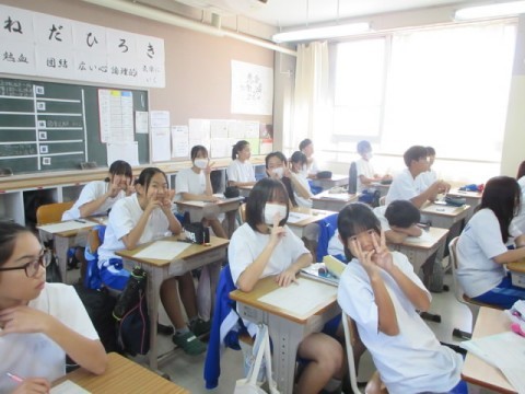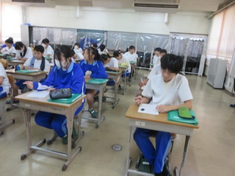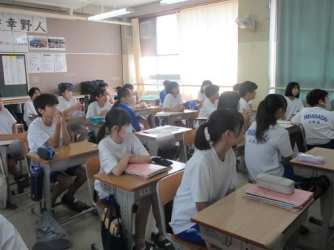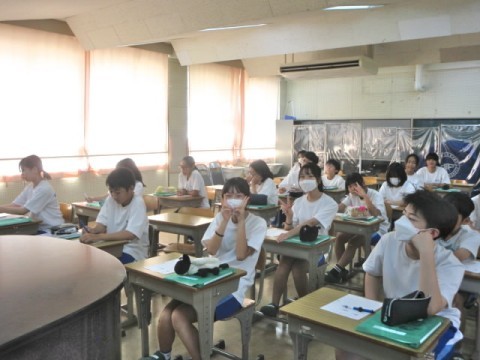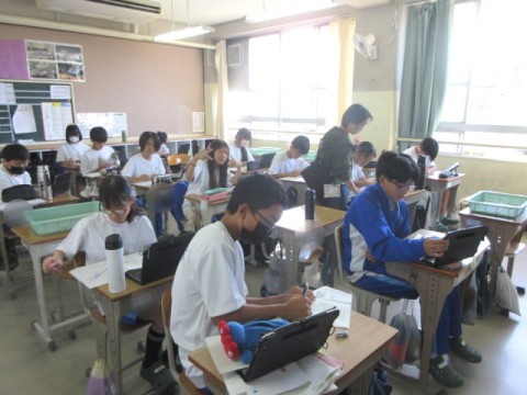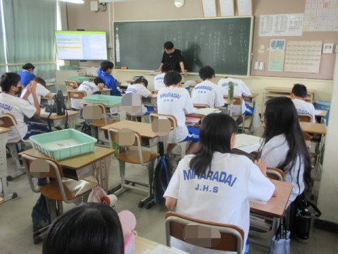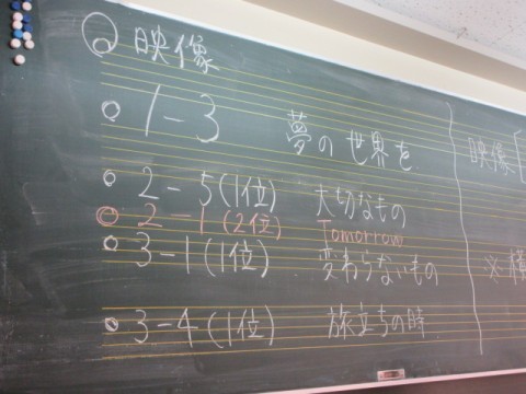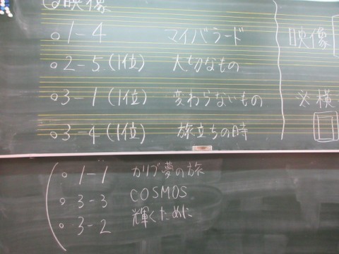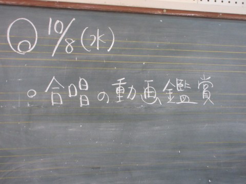 文活の合唱の様子を動画で見た後、2年生,3年生の動画を見ることで来年以降につなげていきます。