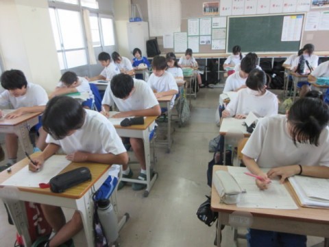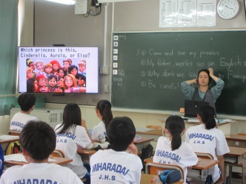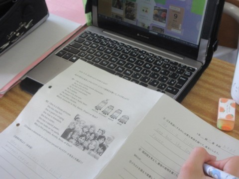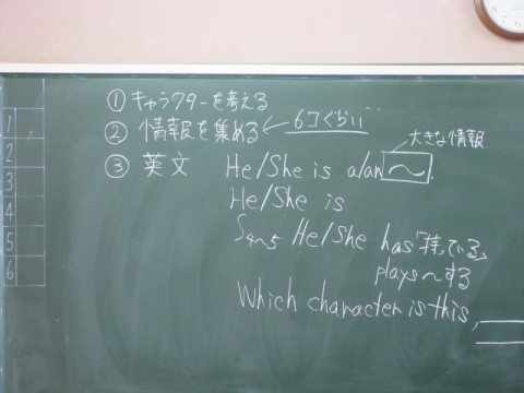 少人数授業で、「自分の好きな有名人やキャラクターについて説明文を書いて、クイズをしよう」が今日のテーマです。