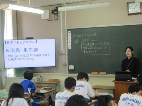 授業の目的は「火山噴火物には、どのような特徴があり、どのようにして噴出するの?」です。