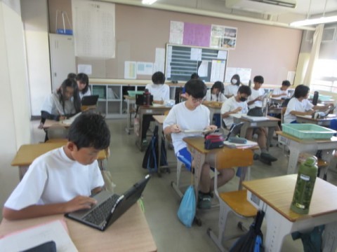 自分のクラスの動画を見た後、他学年の動画(合唱コンクール)を見て感想を書いています。