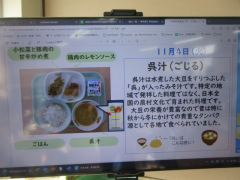 11月4日(火) 給食の様子です!