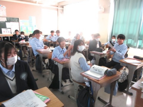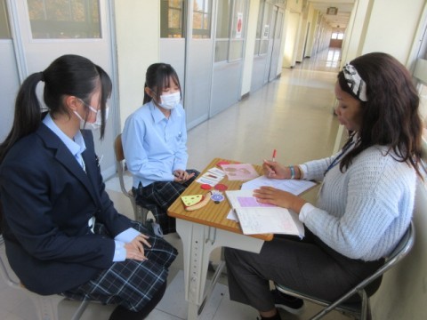 今日は、ネイティブスピーカーの先生の前で発表しています。