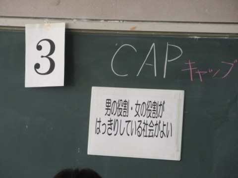 など、自分の考えはどうなのか、1(賛成)、2、3、4、5(反対)にそれぞれ移動して意見を述べあっています。