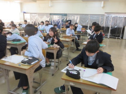 少人数授業で、それぞれ期末テストに向けポイントになるところを学習しています。