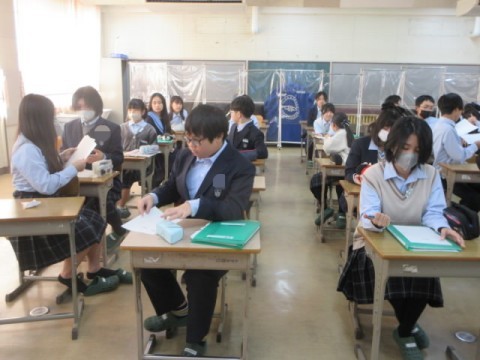 期末テストに向けて、少人数授業で各々の課題に取り組んでいます。