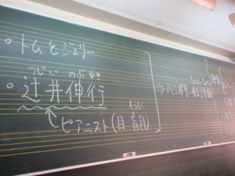 テスト返却の後、ピアニスト辻井伸行さんの演奏を鑑賞します。
