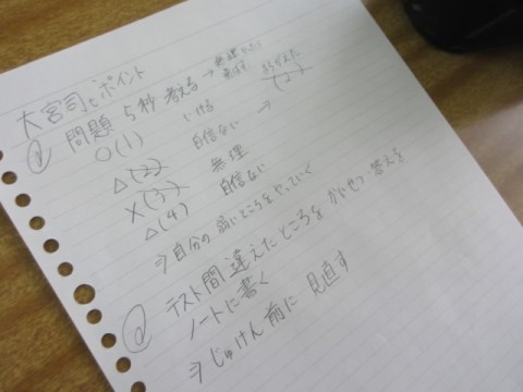 テストを受ける時に大切なことや、テスト返却後のことについて話を聞いています。