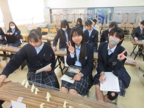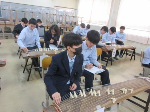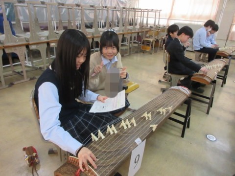 琴で「さくらさくら」の練習をしています。
