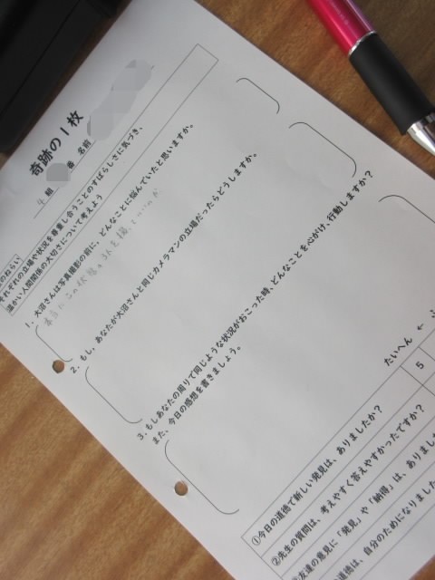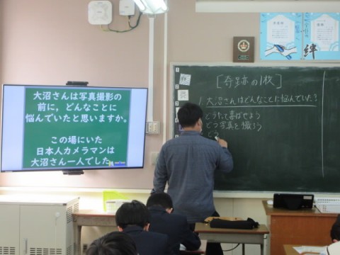 「奇跡の1枚」という教材で、それぞれの立場や状況を尊重し合うことの素晴らしさに気づき、温かい人間関係の大切さについて考えています。