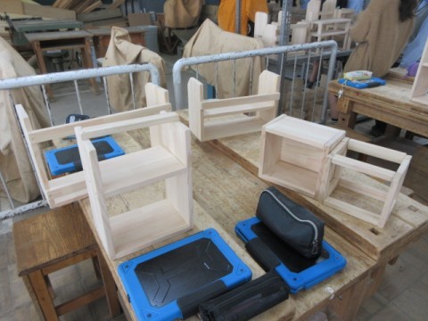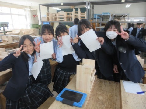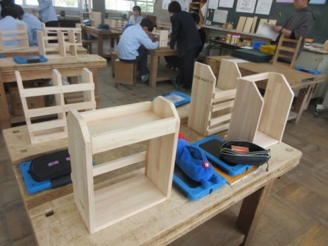 「木製ラック」ができあがり、作品の鑑賞会をしています。