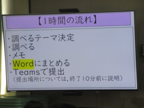 テーマを1つ選びタブレットで調べ、まとめています。