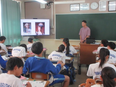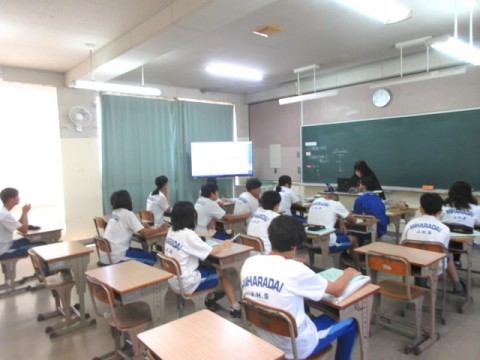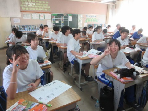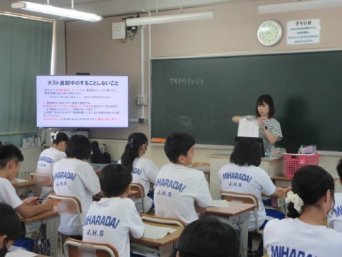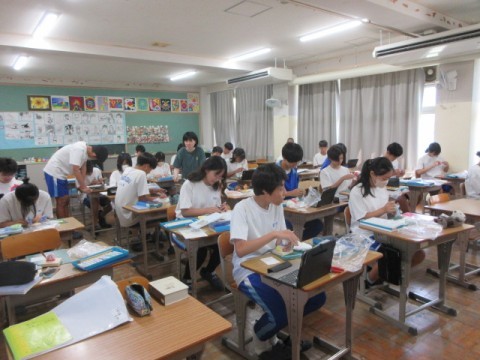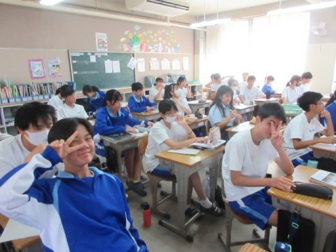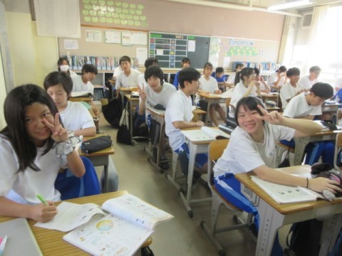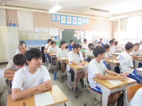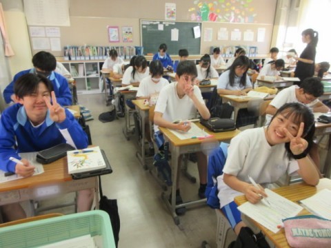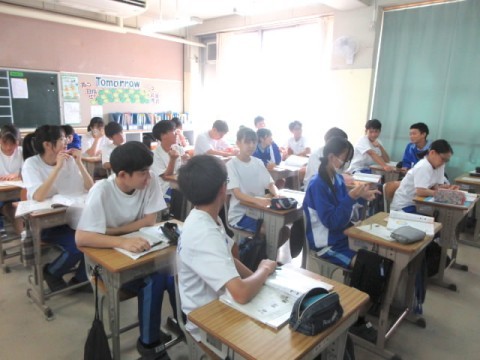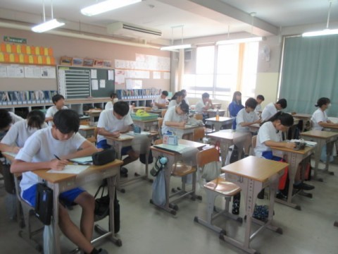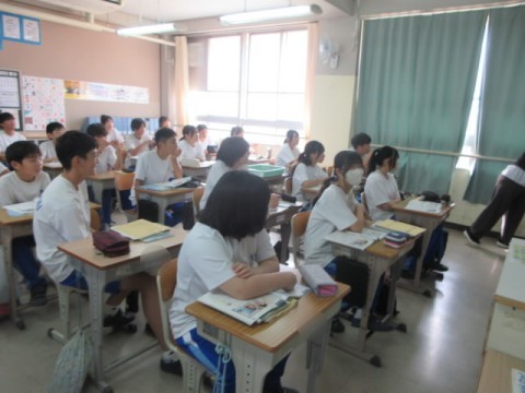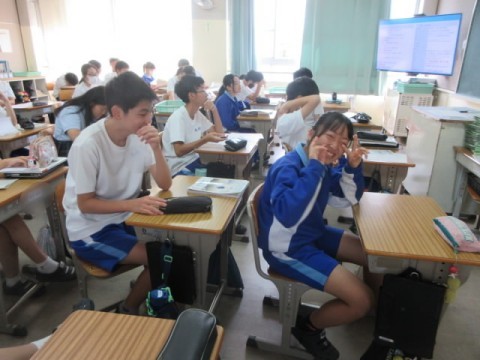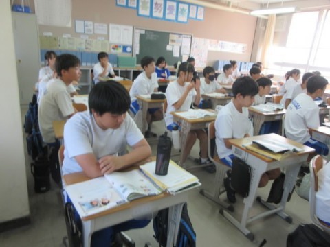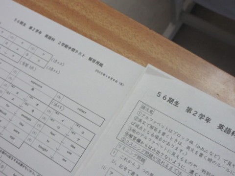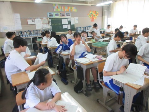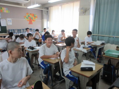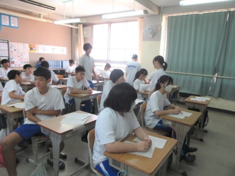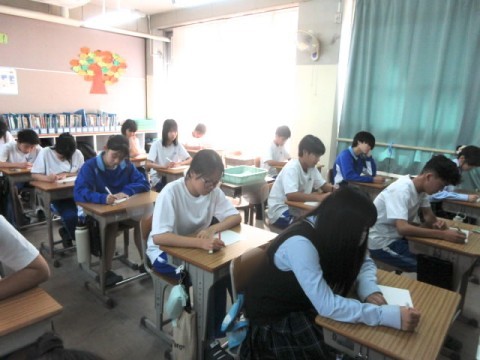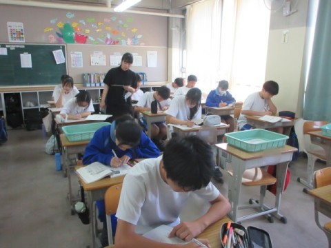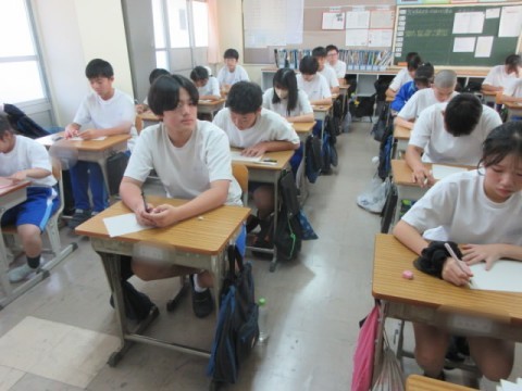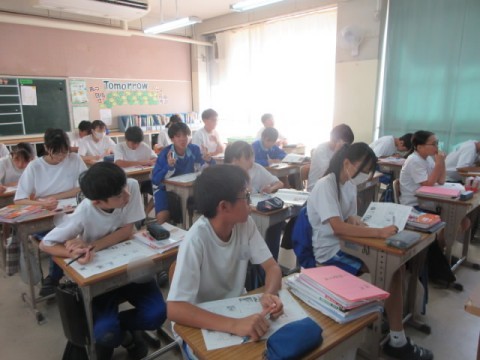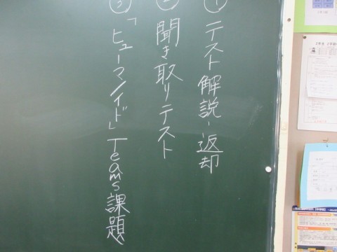 中間テスト解説・返却の後、聞き取りテストをしています。