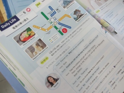 「Daily Life」の電車の乗り換えについて、ネイティブスピーカーの先生と会話のやり取りをしています。