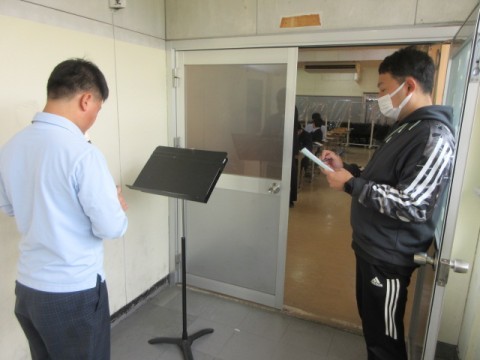 身振り手振りも交え、緊張しながらも楽しくやっています。