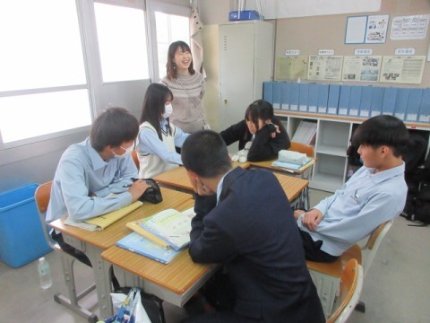本日、5、6限目の時間を使って、2年生でキャリア教育の授業を行いました。5つの事業所の方に来校いただき、出前授業をしてもらいました。今日に至るまでにも生徒たちは5つのグループに分かれ、各事業所の仕事内容について調べ学習をするなど事前学習に取り組みました。自分自身の将来について考える良い機会になりました。