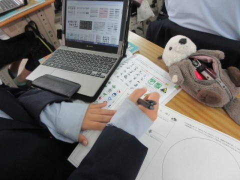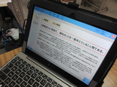 「平家物語」「扇の的」の学習の振り返りをしています。