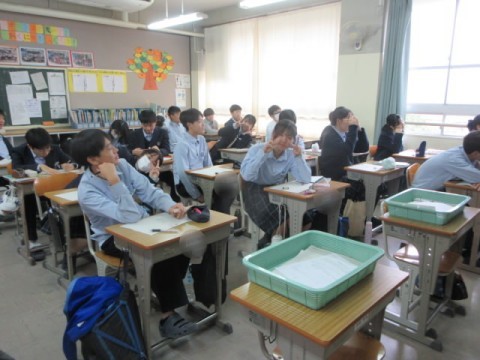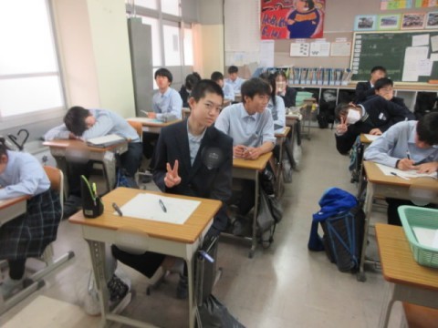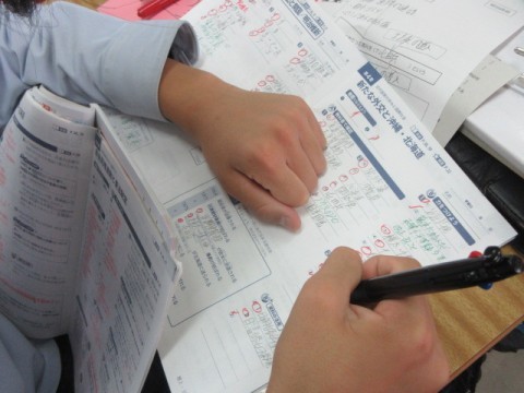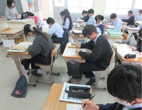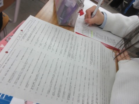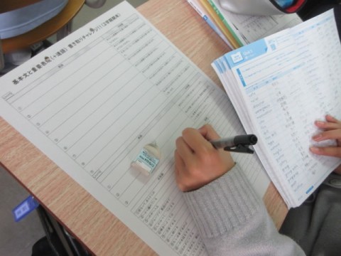 期末テストに向けて、日本語を英訳したり、重要な連語の確認をしたりしています。
