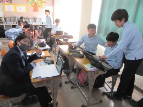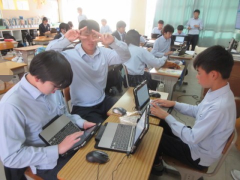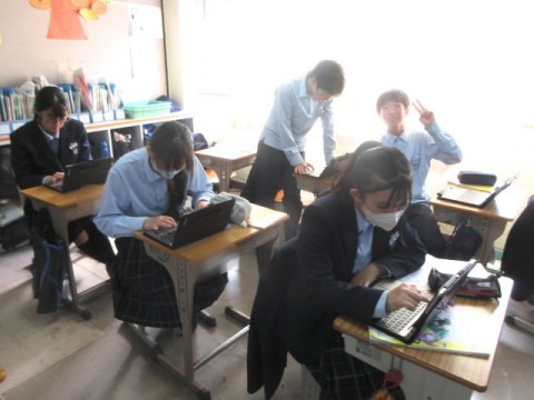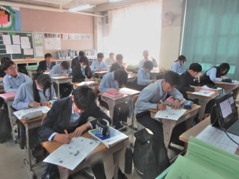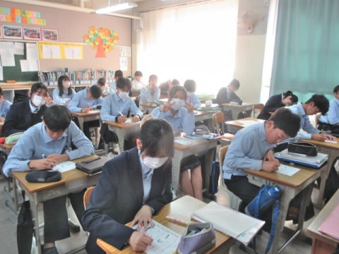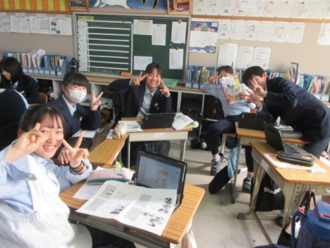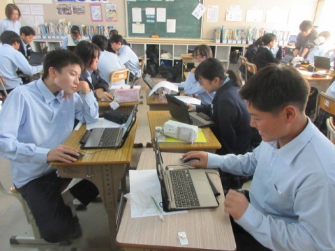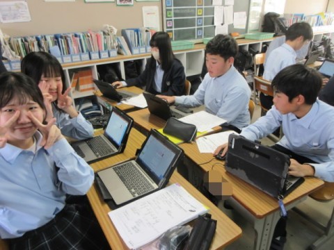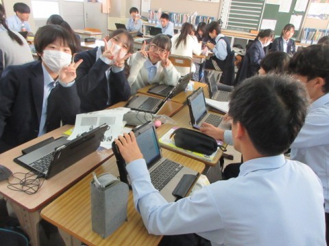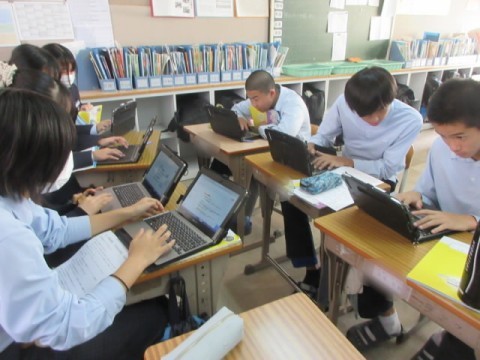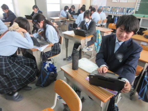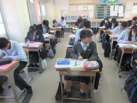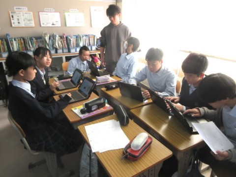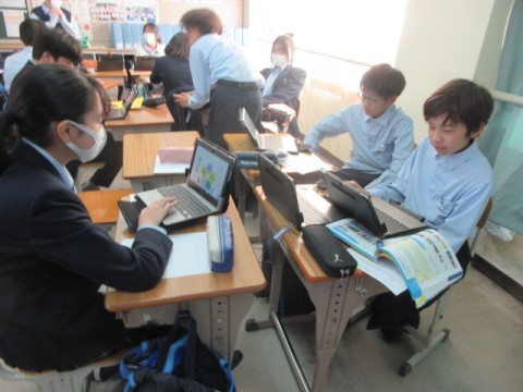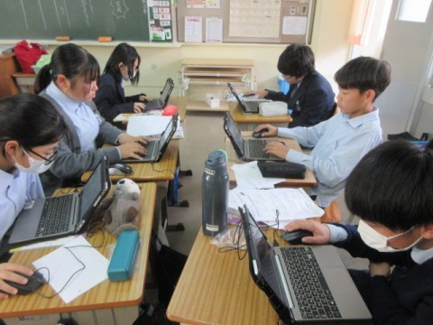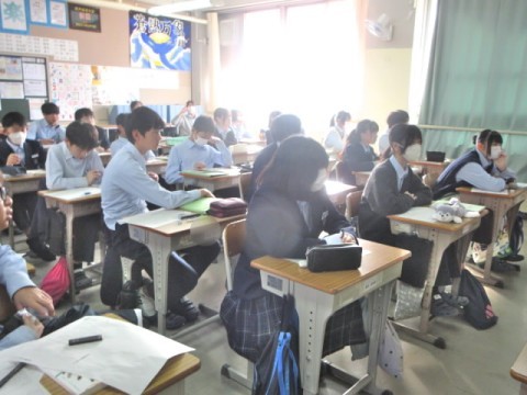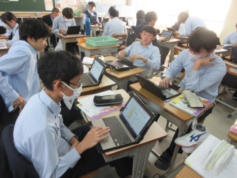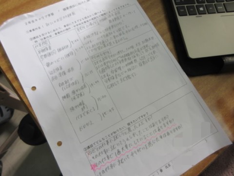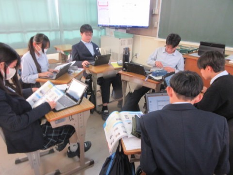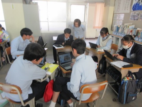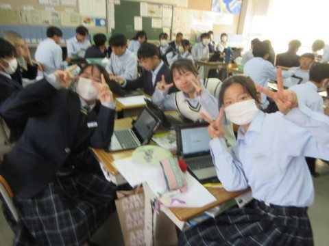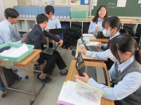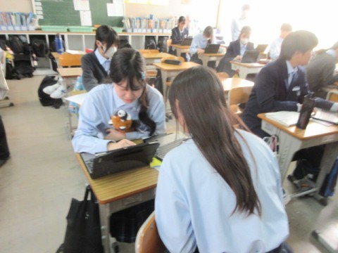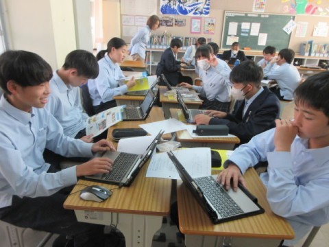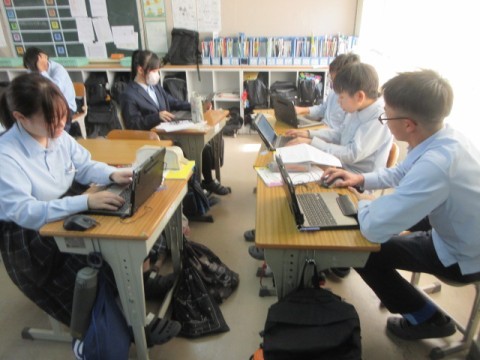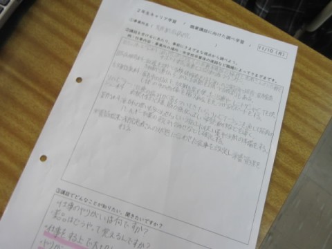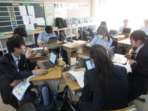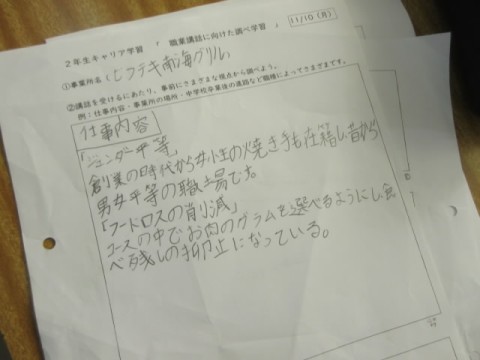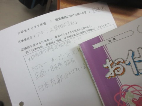 各クラス5つのグループに分かれて、11月10日に職業講話でお話を聞き、今日はそのまとめをしています。