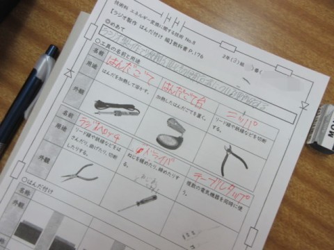 今日のめあては「ラジオ製作で使用する工具とその使用方法について理解する」です。
