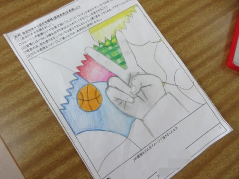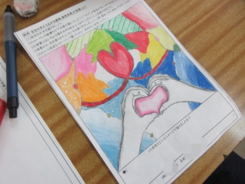 「自分の手から広がる感情を表現しよう」の作品を仕上げている人もいます。