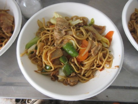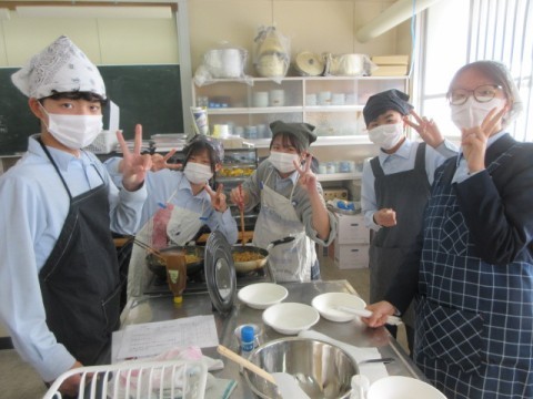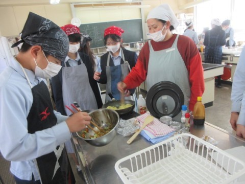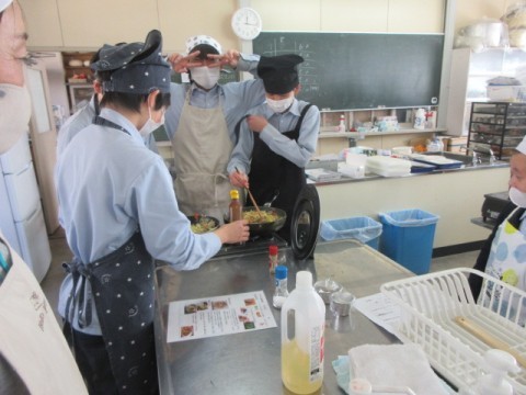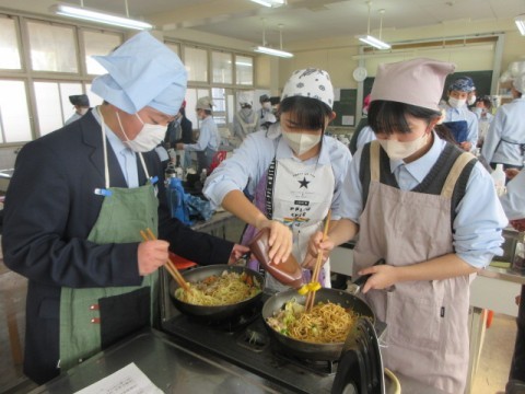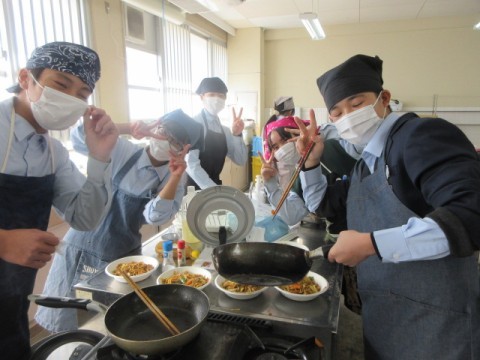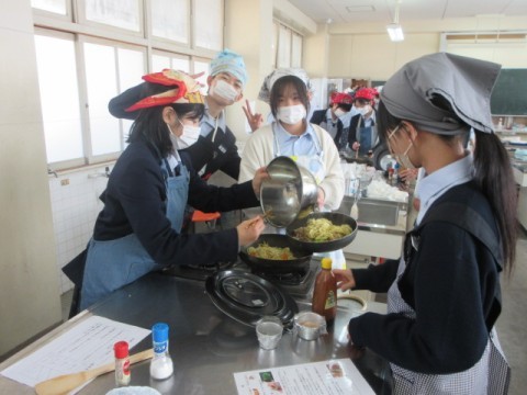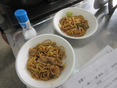 調理実習で「焼きそば」を作っています。