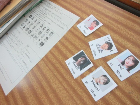 グループに分かれて、モニターに出てくる人物と同じ年齢(身長)の人物のカードを持っている人は