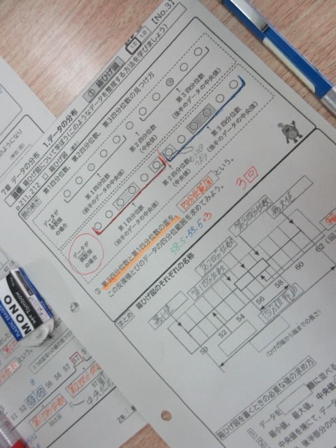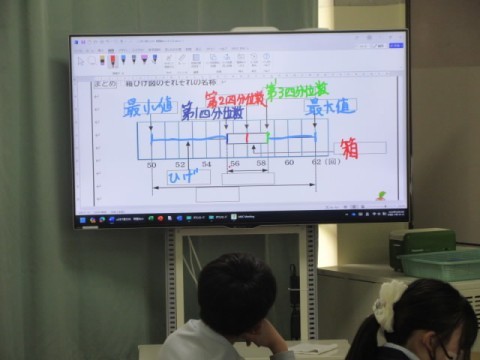 少人数授業で、「箱ひげ図」について学習しています。