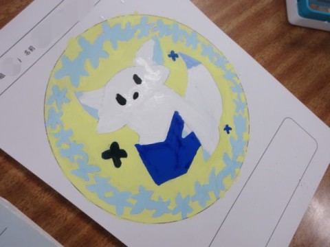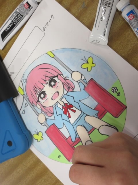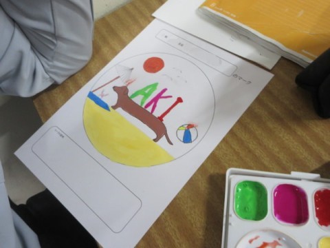 今日は画用紙に清書し、絵の具で色付けをしています。