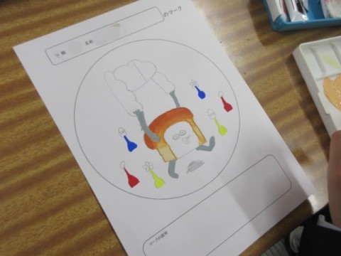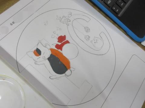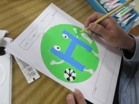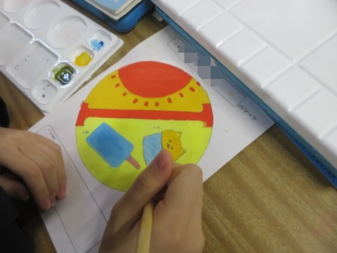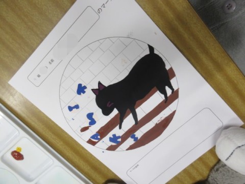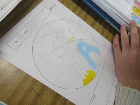 今日は画用紙に清書し、絵の具で色付けをしています。