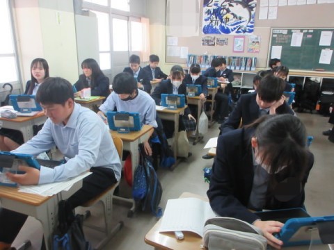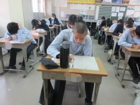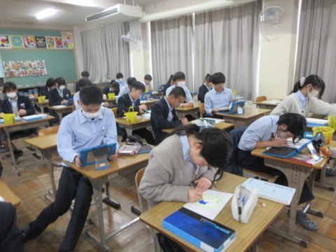 学年末テストの返却をしています。