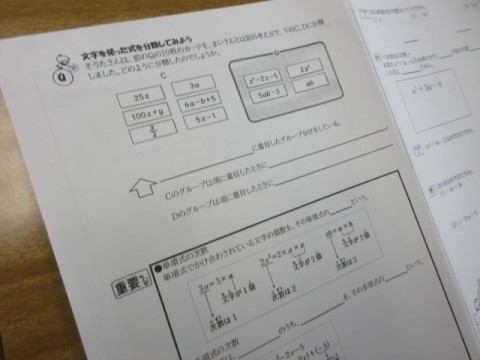 「単項式・多項式」について学習しています。