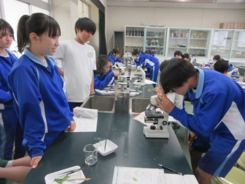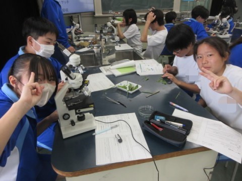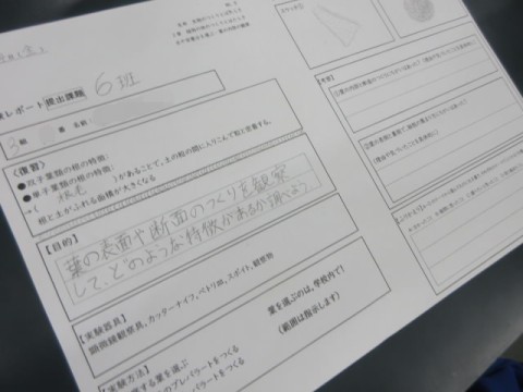 校内の葉を採取して、顕微鏡で調べています。いろいろな発見がありました!