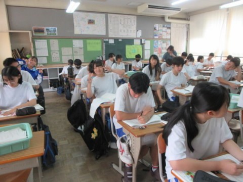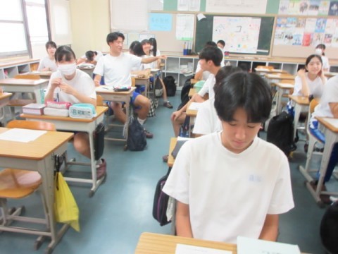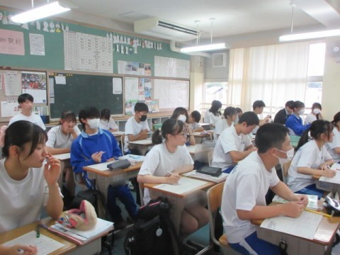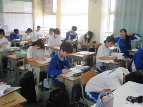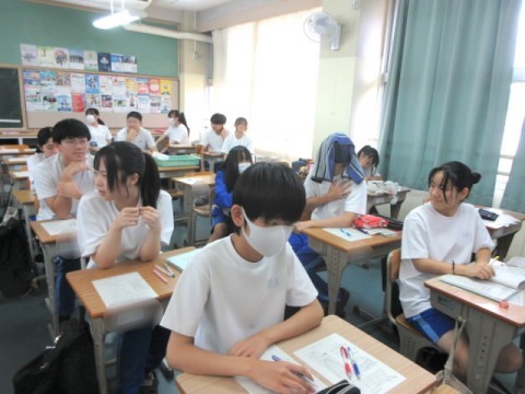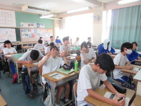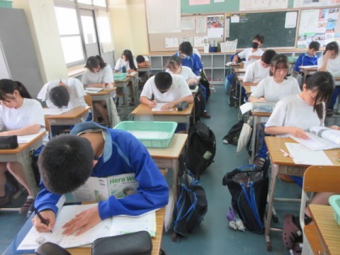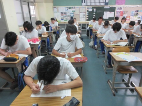 中間テストに向けて、一問一答の問題に取り組んでいます。