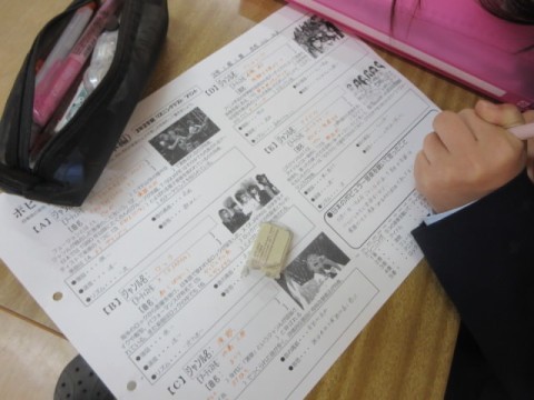 ポピュラー音楽を聴いてリスニングテストをしています。