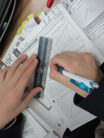 今日のめあては「三角形の辺に平行な線分の長さについて調べてみよう」です。