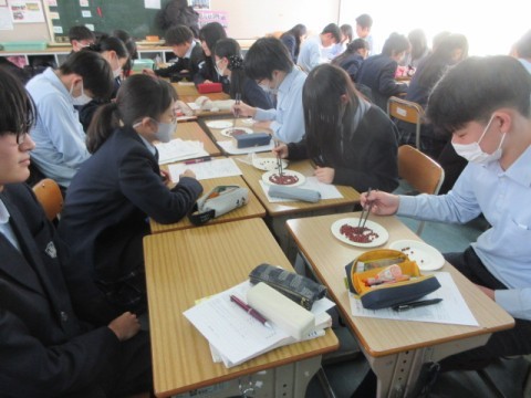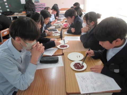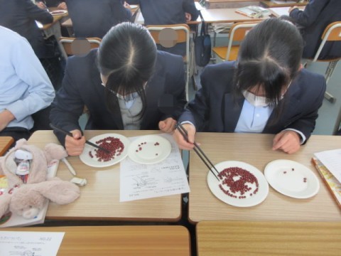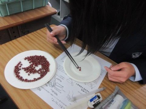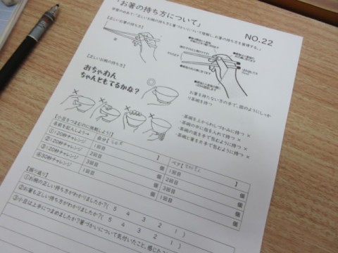 「正しいお箸の持ち方と箸づかいについて理解し、お箸の持ち方を習得する」が学習のめあてです。